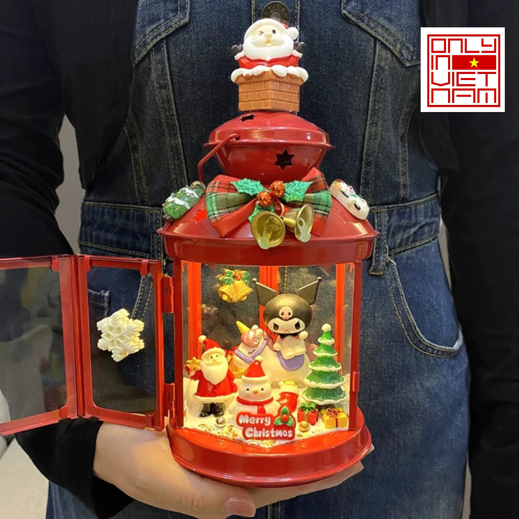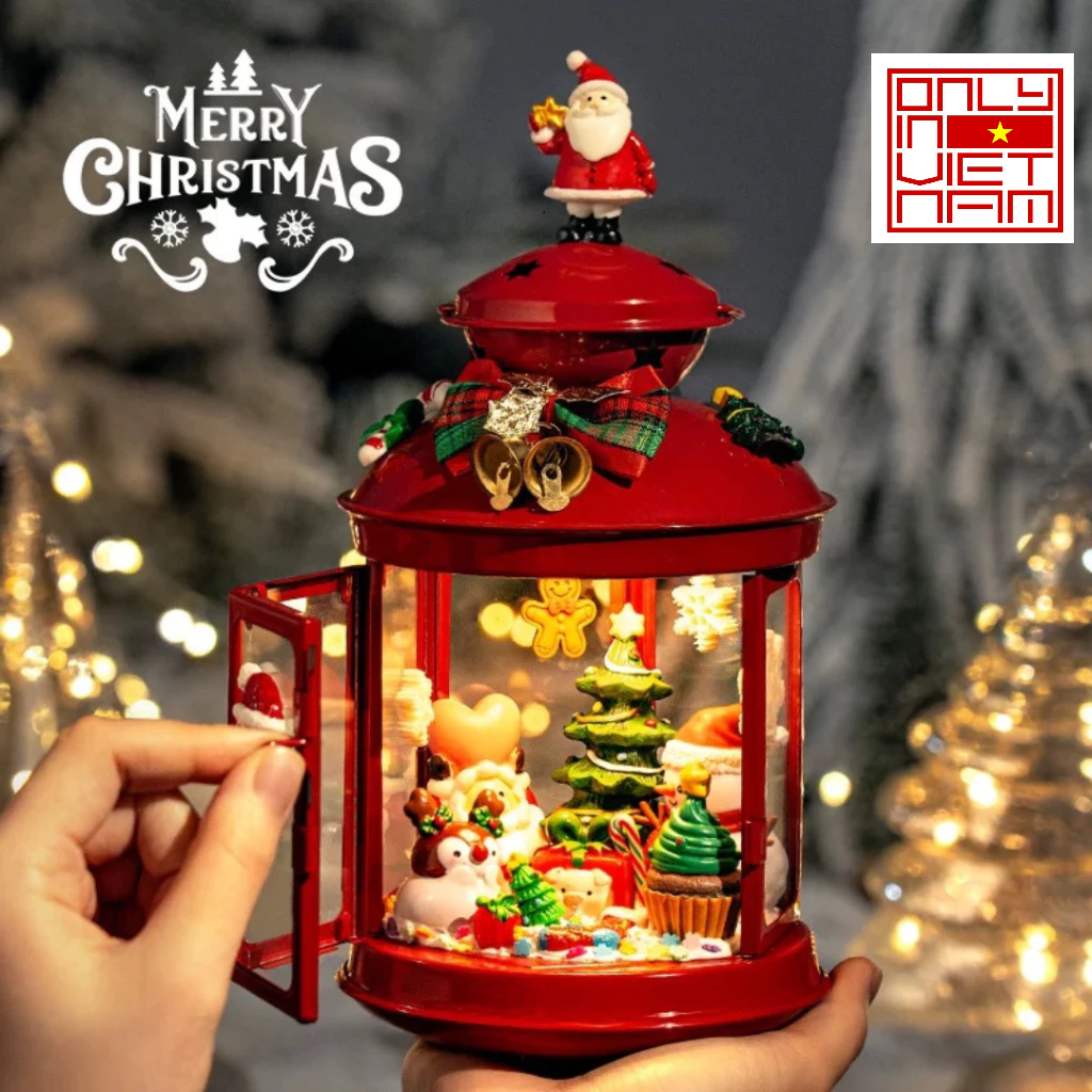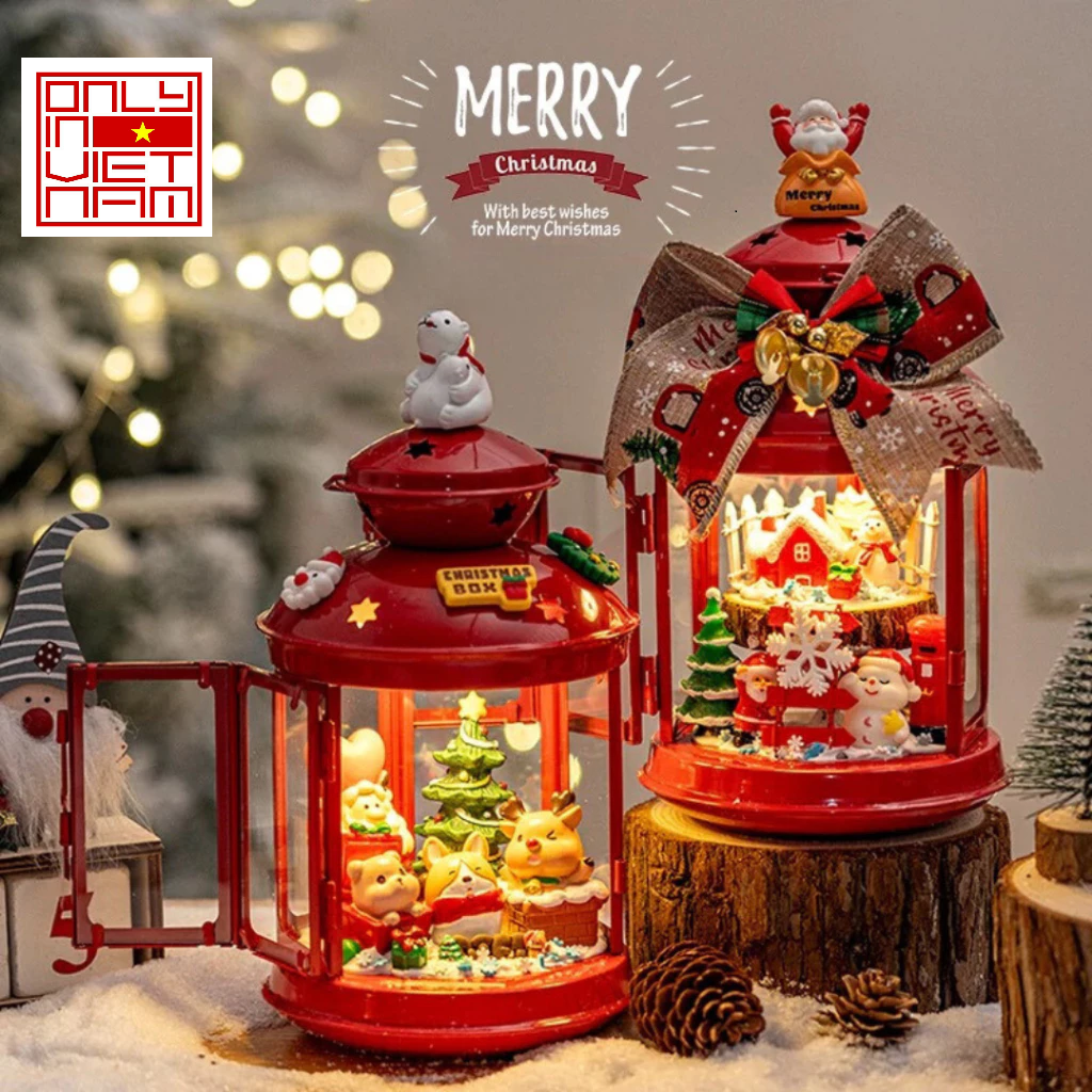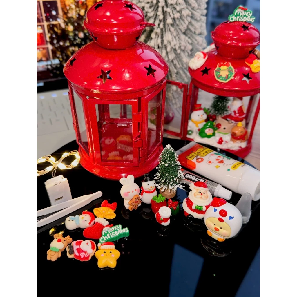 The lantern showcases a unique Christmas-inspired design with charming details such as Santa Claus, Christmas trees, stars, and gift boxes—bringing a joyful and sparkling holiday vibe to any space.