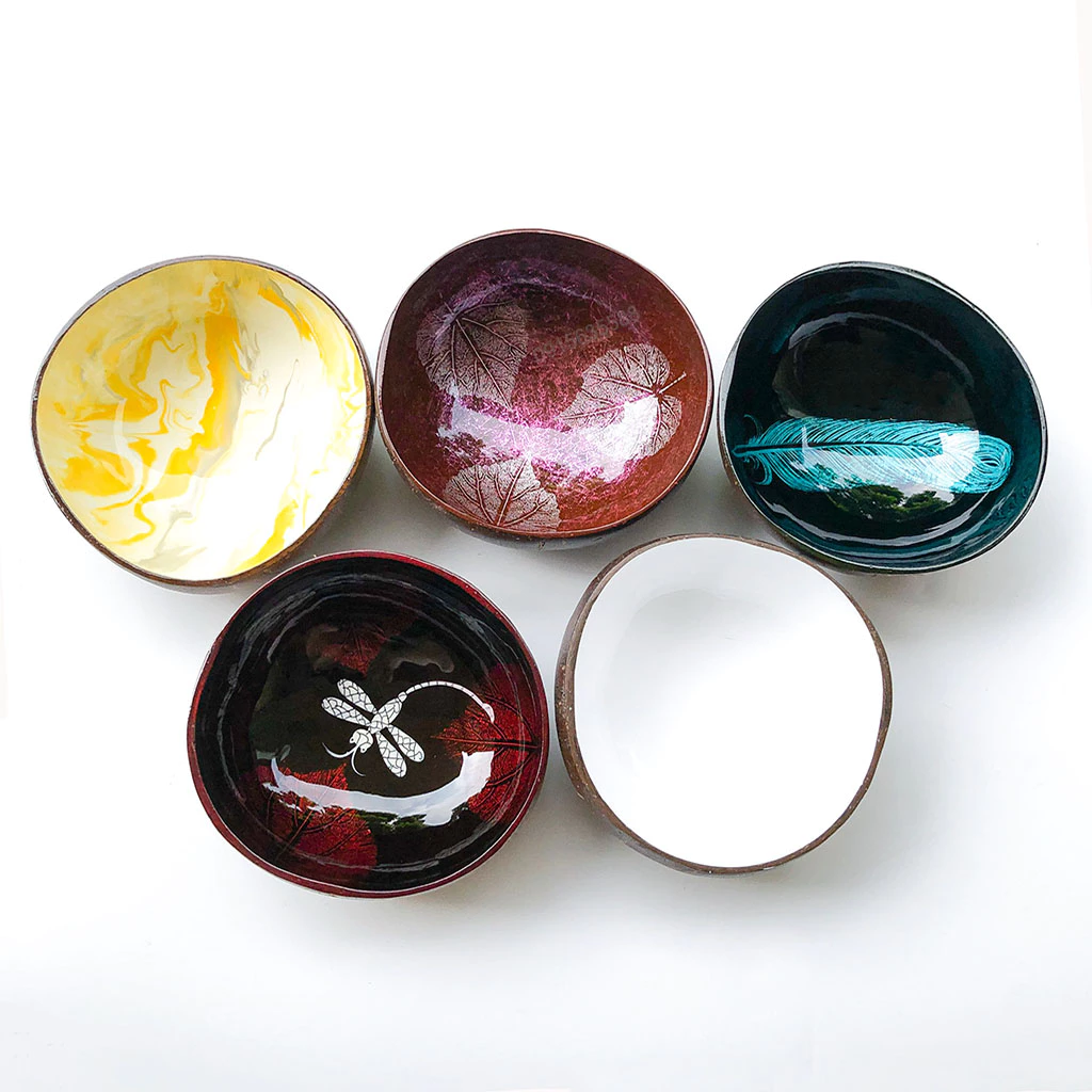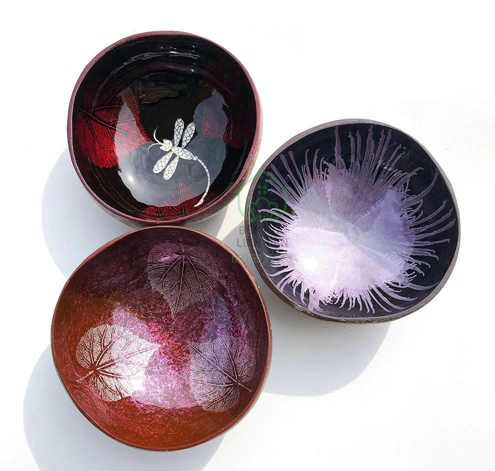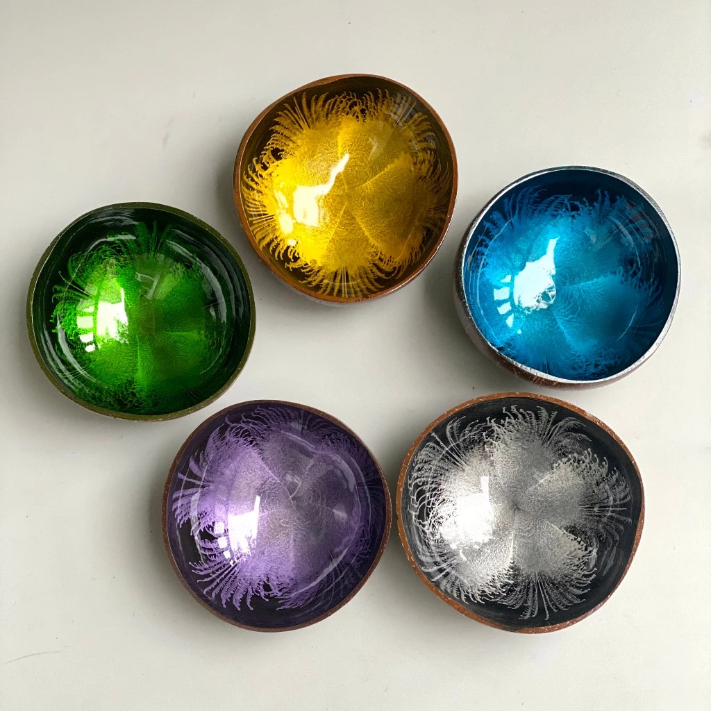 These lacquered coconut bowls are not only decorative but also practical, making them an ideal, distinctive gift for any occasion.