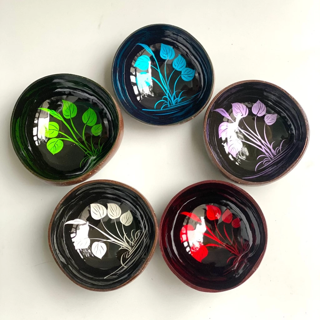 • Each lacquered coconut bowl is handcrafted from the shell of mature coconuts, carefully cleaned, shaped, and painted by skilled artisans from the “land of coconuts.”
